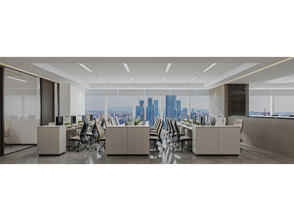 風(fēng)順集團(tuán)裝修效果以 “大氣沉穩(wěn) + 現(xiàn)代高效” 為核心,整體采用深灰、米白為主色調(diào)搭配金屬線條點(diǎn)綴,凸顯企業(yè)質(zhì)感。前臺(tái)接待區(qū)用大理石背景墻嵌入集團(tuán) LOGO,搭配簡約大氣的接待臺(tái)與藝術(shù)擺件,營造專業(yè)第一印象;濟(jì)南辦公室裝修為開放辦公區(qū)采用模塊化工位設(shè)計(jì),配備獨(dú)立收納與人體工學(xué)座椅,墻面穿插集團(tuán)發(fā)展歷程掛畫與綠植,兼顧高效與舒適;會(huì)議室按規(guī)模配置高清會(huì)議系統(tǒng)與吸音材質(zhì),滿足不同商務(wù)需求;同時(shí)預(yù)留休閑茶水區(qū)與榮譽(yù)展示墻,既方便員工放松,也直觀傳遞企業(yè)實(shí)力,整體空間兼具品牌形象與實(shí)用功能。