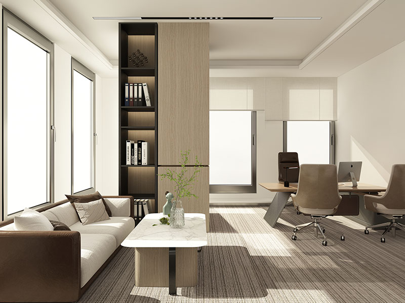少而精的藝術(shù)表達輕奢軟裝遵循 “少即是多” 的原則,以精致設(shè)計感為核心:家具選擇:辦公椅采用人體工學設(shè)計與質(zhì)感面料結(jié)合,沙發(fā)選用造型簡約卻有線條感的款式,既保證實用性,又傳遞設(shè)計美學。配飾點綴:藝術(shù)感擺件、小型綠植、設(shè)計感書籍等,作為空間的 “點睛之筆”,不求數(shù)量繁多,只求與整體風格契合,提升空間的精致度與生命力。